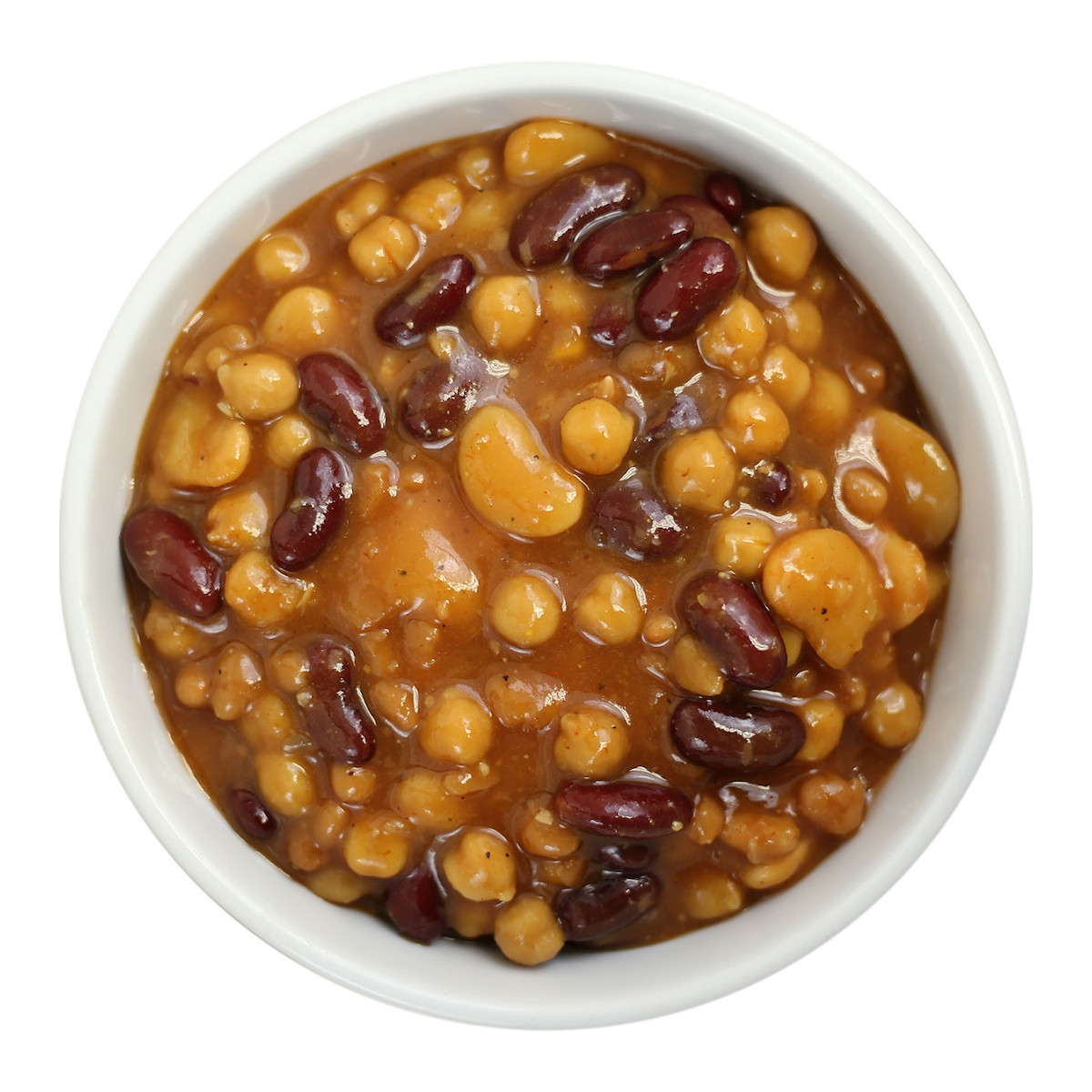 This medley combines cannellini, butter, and white beans. Dressed lightly with BBQ sauce, hickory, and blend of spices.
