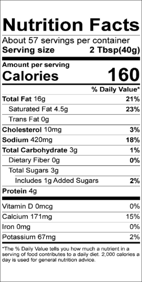PASTEURIZED PROCESS AMERICAN CHEESE FOOD (Cultured Milk, Water, Cream, Skim Milk, Whey Protein Concentrate, Sodium Phosphates, Salt, Sorbic Acid (preservative), Annatto and Paprika Extract (color), Enzymes), MAYONNAISE (Soybean Oil, Water, Egg Yolks, Distilled Vinegar, Sugar, Salt, Mustard Seed, Dehydrated Garlic and Onion), SALAD DRESSING (Water, Soybean Oil, Sugar, Distilled Vinegar, Modified Food Starch (corn), Egg Yolks, Salt, Xanthan Gum, Mustard Flour), RED PEPPERS (Peppers, Water, Citric Acid), PIMENTOS (Pimentos, Water, Citric Acid), WATER, SUGAR, TOMATO PASTE (Tomatoes), WORCESTERSHIRE SAUCE (Distilled White Vinegar, Water, Molasses, High Fructose Corn Syrup, Salt, Soy Sauce (Water, Salt, Hydrolyzed Soy Protein, Corn Syrup, Caramel Coloring), Natural Flavoring, Caramel Coloring, Anchovies, Polysorbate 80, Soy Flour, Garlic Extract), CHEDDAR CHEESE BLEND (Cheddar Cheese (Pasteurized Milk, Cheese Cultures, Salt, and Enzymes), Buttermilk, Whey, Salt, Disodium Phosphate and Annatto Extract, Less than 2% Silicon Dioxide added as a Processing Agent to Prevent Caking), XANTHAN GUM, GLUCONO DELTA LACTONE, CITRIC ACID, SODIUM BENZOATE (Preservative), SODIUM DIACETATE, POTASSIUM SORBATE (Preservative), SALT. Contains Egg, Fish, Milk, Soy.