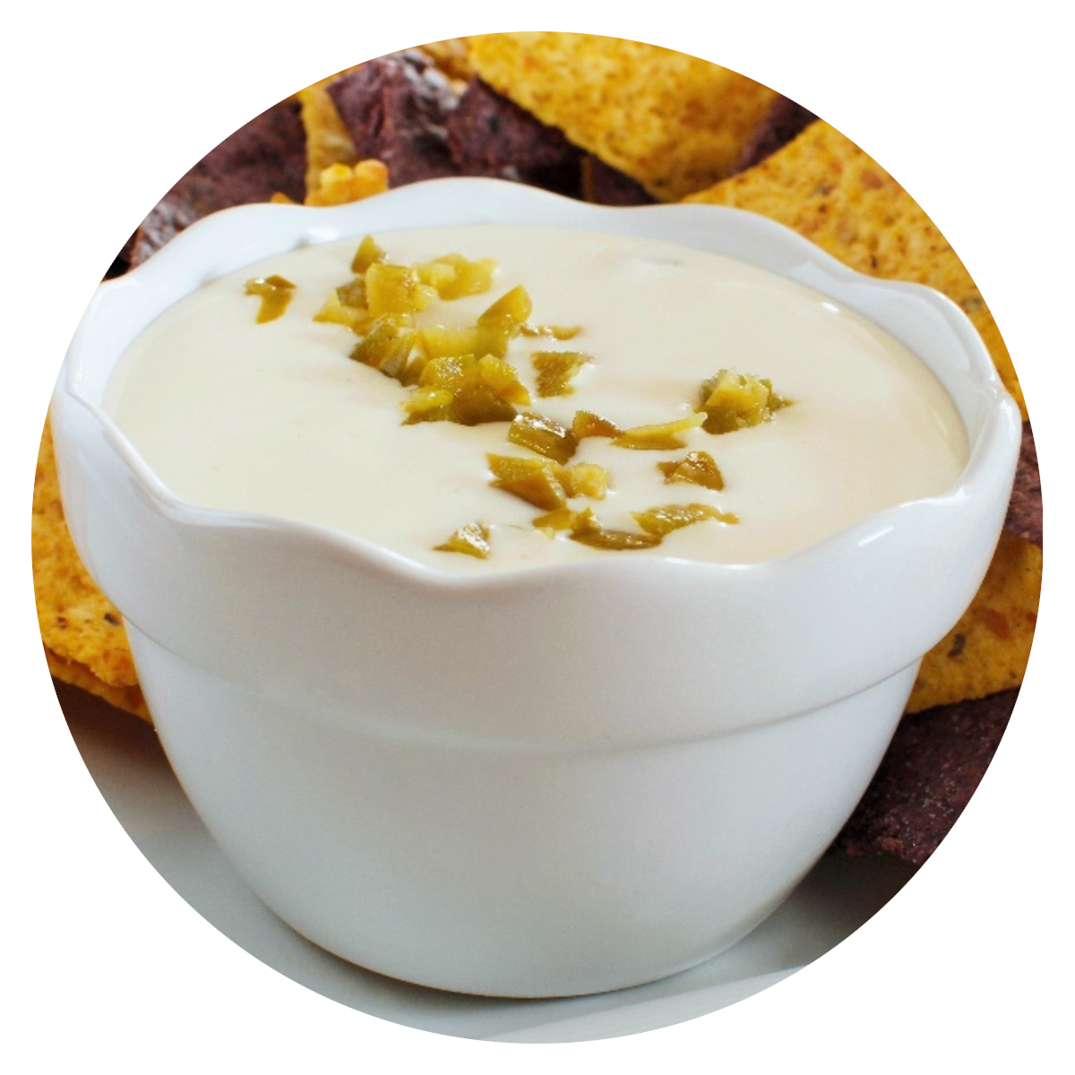 Premium white American cheese melted into a creamy, mild cheese dip with jalapeños and southwestern spices.