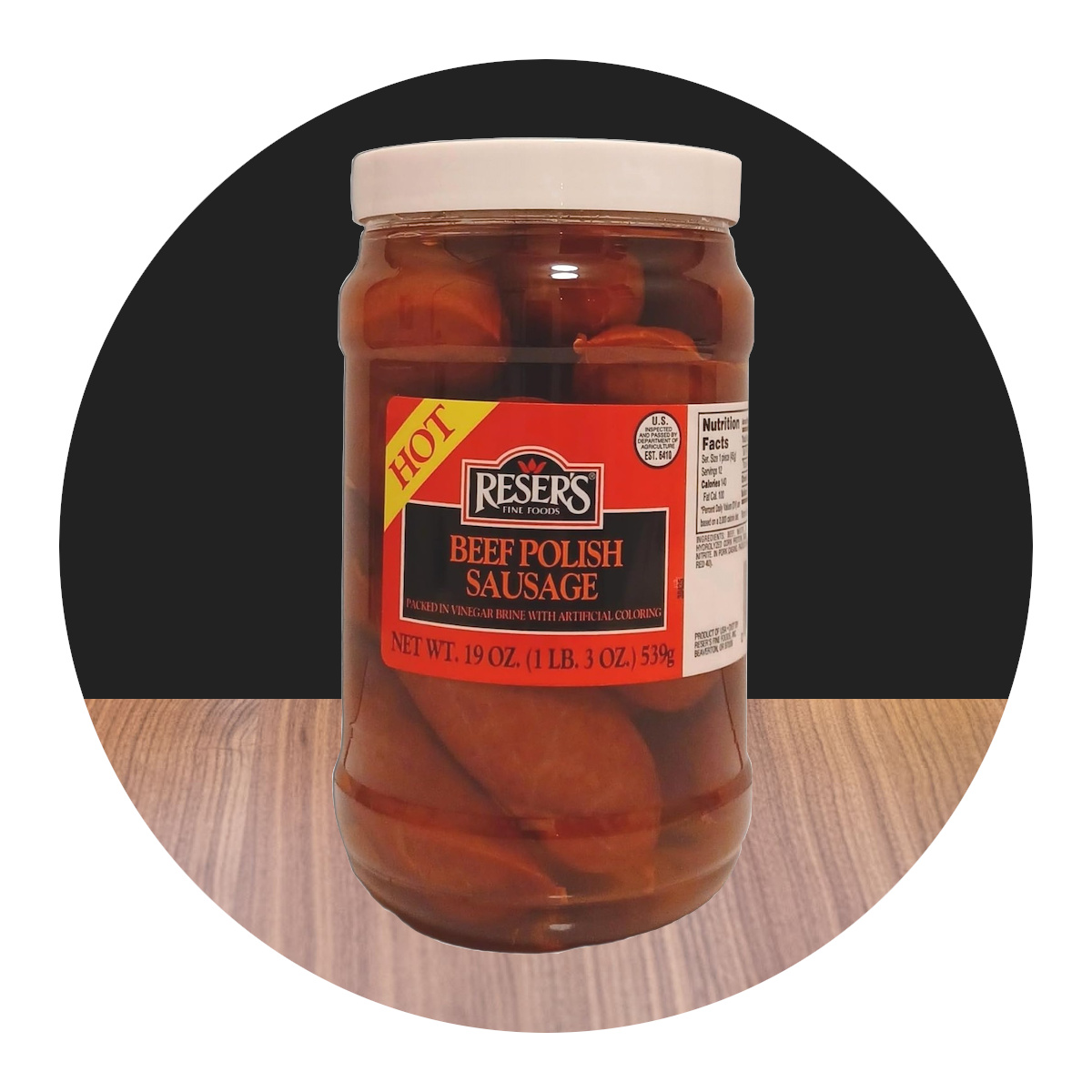 A ready-to-eat, refrigerated snack. Sausages are made with beef in a pork casing, offering a spicy, tangy, and crunchy experience.