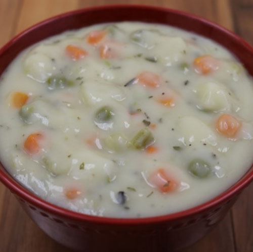 Creamy poultry-flavored sauce with potatoes, carrots, and peas. Ready to mix with protein such as chicken or turkey and bake in a pie crust. No artificial colors, flavors, or preservatives. Makes 8-5” pies. Poultry not included.