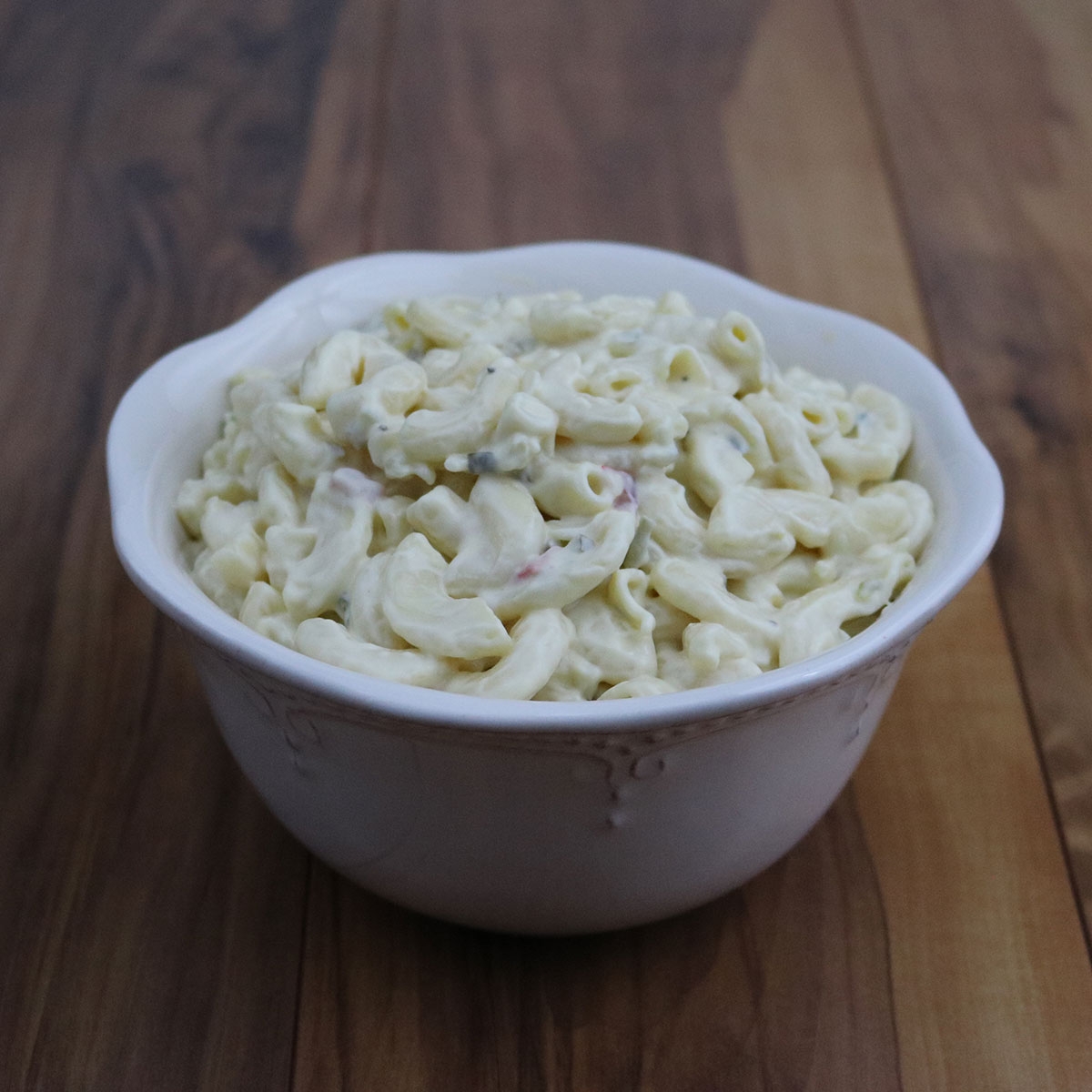 This deli-style macaroni salad is made with perfectly plump elbow macaroni and a sweet-tart mayonnaise dressing, finished with crisp celery, red bell pepper and sweet pickle relish.