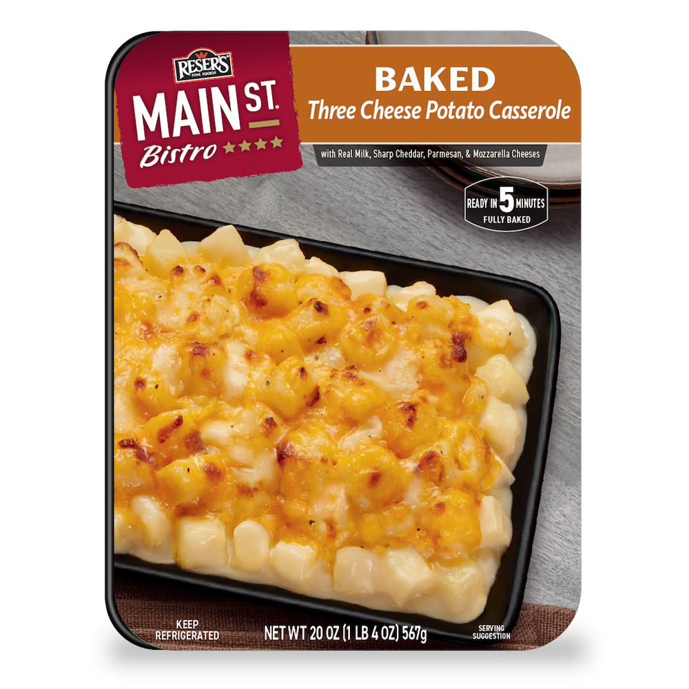 A hearty baked casserole of shredded potatoes topped with golden-brown sharp cheddar cheese. No artificial colors or flavors.