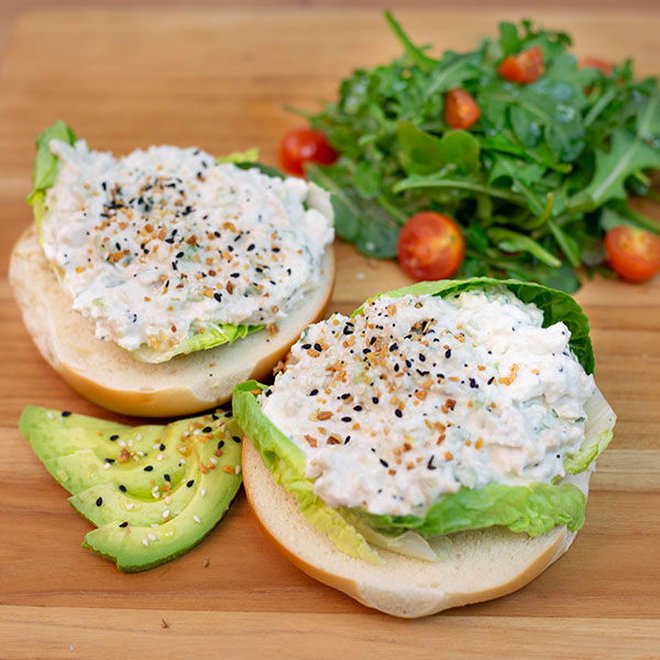 A rich, mayonnaise-based dressing enveloping shredded white meat chicken, crunchy celery, and sweet pickles.